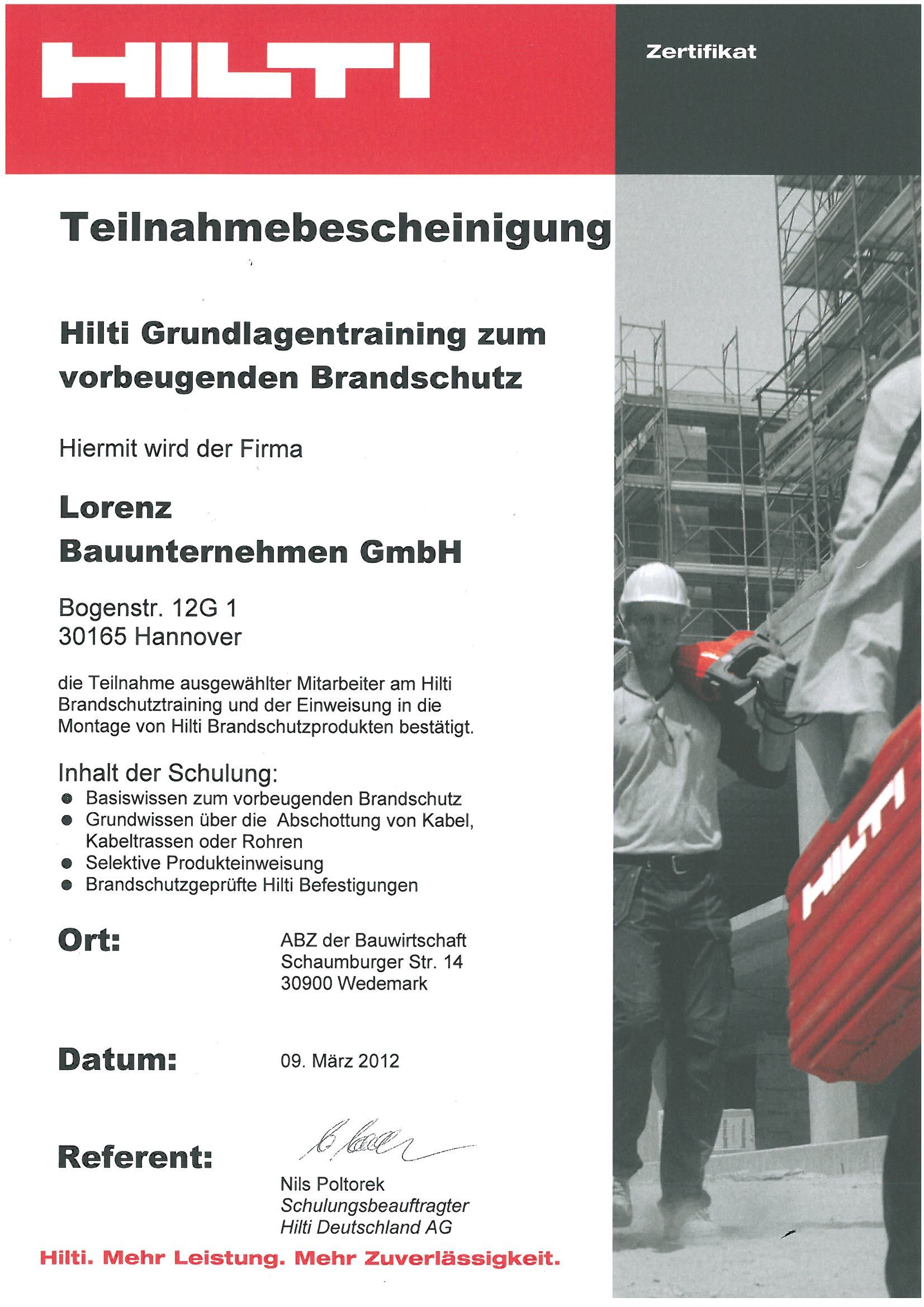 Zertifikat Hilti Brandschutz Premium 2020 - M. Lorenz